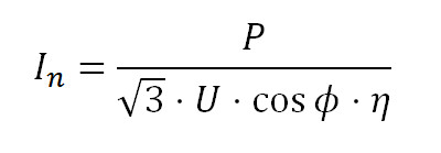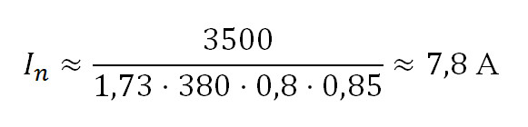 Для трехфазной сети 380 В расчет ведут по формуле: